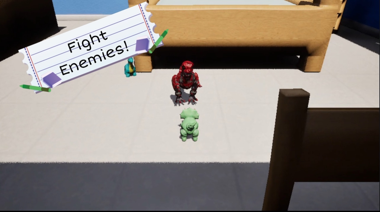 ToySaurs! is a 3D action gamewith a chibi visual style, set in a child’s bedroom. Players control a dinosaur toy as they battle corrupted toys and solve a variety of puzzles to progress. The game features fast-paced combat, diverse enemy types, mini-games, and a unique transformation system that lets players switch forms and abilities, combining action and strategy to create a fun and engaging gameplay experience.